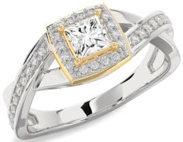 Diamond White Yellow Gold Halo Princess Engagement Ring