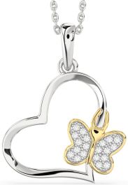 Diamond White Yellow Gold Heart Butterfly Necklace