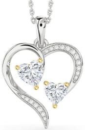 This graceful pendant features a sweeping heart outline adorned with delicate shimmering accents, cradling two heart-shaped gems in radiant harmony. The contrast between vibrant green and classic brilliance symbolizes balance, unity, and the bond between two unique souls. Romantic and expressive, this design captures the essence of connection and the beauty of love in perfect duality.