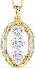 Set in a golden oval frame, this exquisite Mother's necklace features three heart-shaped gems stacked in a gentle vertical flow, embraced by twin trails of radiant accent stones. Each heart represents a beloved child, their bond secure within the protective loop of maternal love. The pendant evokes unity and eternal connection, a symbol of a mother’s steady guidance that surrounds her children.