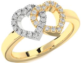 This stunning promise ring features two interlocking heart outlines, each meticulously lined with sparkling round-cut diamonds and set in radiant yellow gold. The hearts symbolize unity and everlasting devotion, making it a perfect gift to express your heartfelt promise. With its sleek band and romantic design, this promise ring radiates elegance and sincere sentiment.