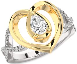 Diamond White Yellow Gold Heart Solitaire Engagement Ring