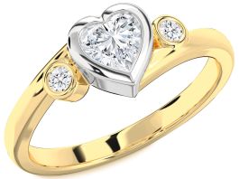 Diamond White Yellow Gold Heart Three Stone Engagement Ring