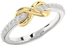 This refined Promise ring showcases an elegant infinity design crafted in polished yellow gold, symbolizing eternal love and commitment. The sleek curves of the band intertwine gracefully, while shimmering round-cut white stones accent each side, adding radiant sparkle. A meaningful Promise ring, it represents unbreakable bonds and everlasting devotion with classic beauty.