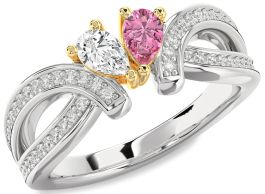 Diamond White Yellow Gold Pear Two Stone Promise Ring