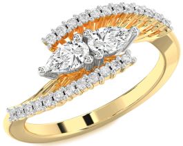 This elegant Promise ring radiates charm and meaning, with two pear-cut gemstones—an icy aquamarine blue and a delicate pink—nestled side by side in a golden fan-like setting. Rows of shimmering round-cut diamonds frame the centerpiece, adding brilliance to the flowing curves of the yellow gold band. Symbolizing unity and lasting affection, this Promise ring is both stylish and sentimental.