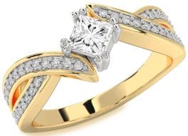 Diamond White Yellow Gold Princess Solitaire Pave Engagement Ring