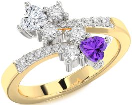 This lively and radiant Promise ring displays a graceful combination of two heart-shaped center stones and a constellation of round accent stones, all set in a gently split gold band. The asymmetrical design adds artistic flair, while the dual hearts represent harmony and meaningful bonds. Sparkling with movement and energy, this piece exudes warmth and thoughtful charm.