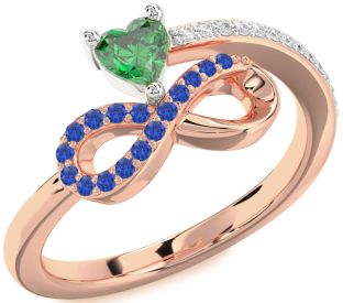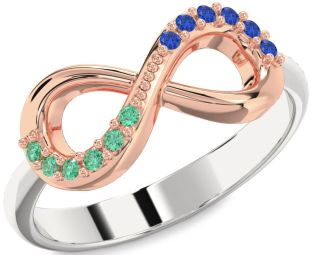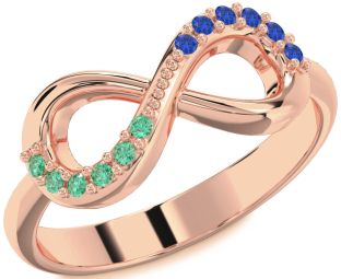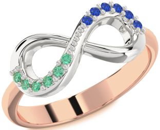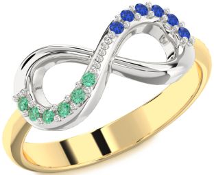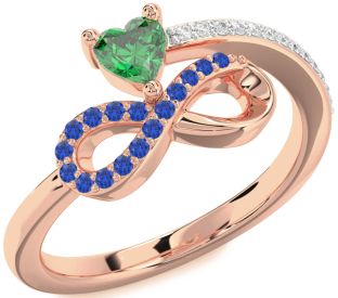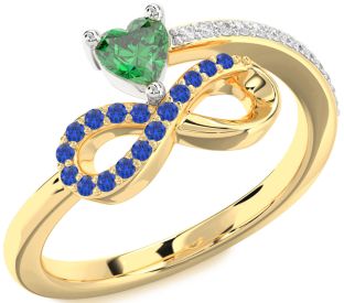 Emerald and Blue Sapphire Infinity, Sun, Lock and Interlock Rings Jul Ruby
