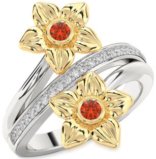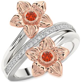 Emerald and Fire Opal Flower and Interlock Rings Jul Ruby