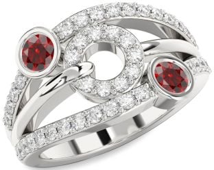 Emerald and Garnet Evil Eye and Interlock Rings Jul Ruby