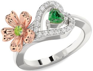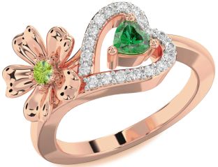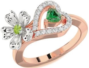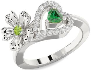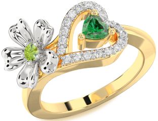 Emerald and Peridot Flower and Interlock Rings Jul Ruby