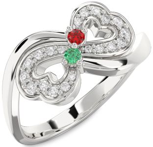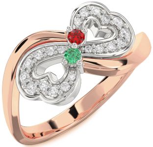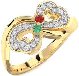 Emerald and Ruby Infinity, Star, Sun, Wings, Lock and Interlock Rings Jul Ruby and Aug Peridot