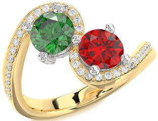 Emerald and Ruby Couples, Solitaire, Clover, Lock and Interlock Rings Jul Ruby