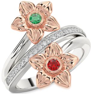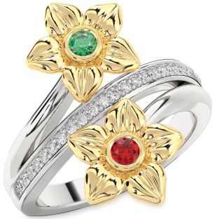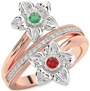 Emerald and Ruby Flower, Heart, Angel and Solitaire Rings Jul Ruby
