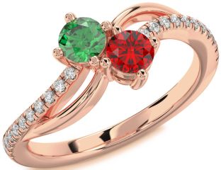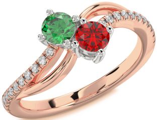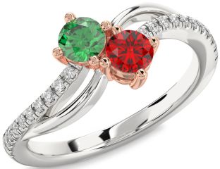 Emerald and Ruby Birthstone, Wings and Interlock Rings Jul Ruby