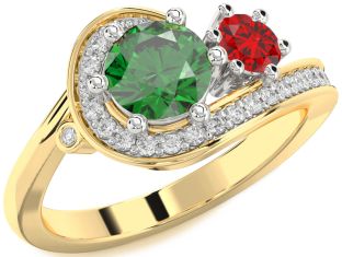 Emerald and Ruby Bow, Couples and Interlock Rings May Emerald and Jul Ruby