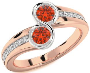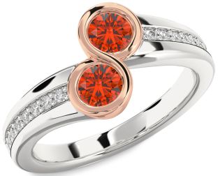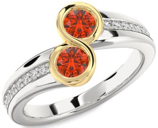 Fire Opal and Gemstone Couples, Lock and Interlock Rings Jul Ruby