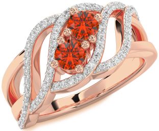 Fire Opal Knot, Sun, Circle and Interlock Rings Jul Ruby