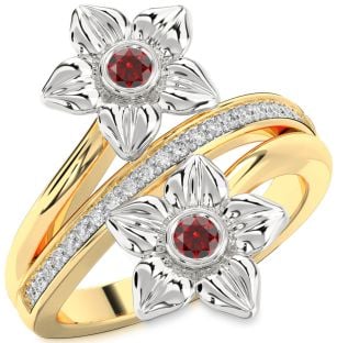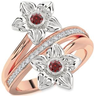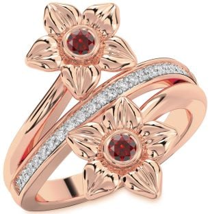 Garnet Flower, Solitaire and Lock Rings Jul Ruby