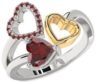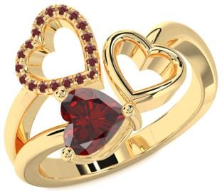 Garnet Heart, Solitaire and Sun Rings Jul Ruby