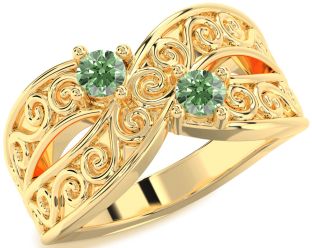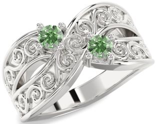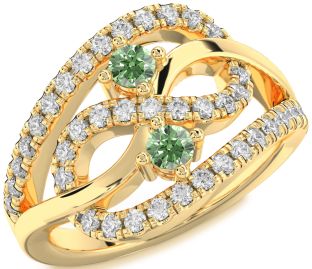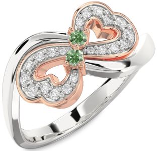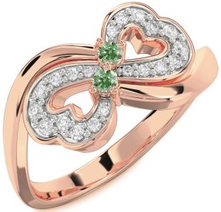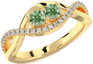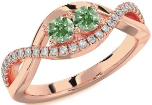 Green Diamond Infinity, Snowflake, Circle and Interlock Rings Jul Ruby