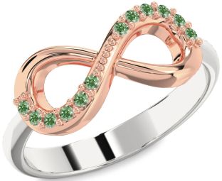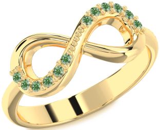 Green Diamond Knot, Infinity and Interlock Rings Jul Ruby