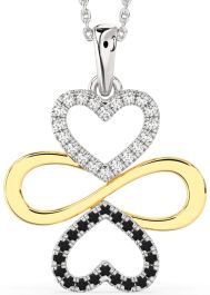 Large Black Diamond Gold Silver Heart Infinity Necklace