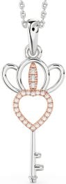 Large Diamond Platinum & Rose Gold Heart Crown Necklace