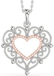 Large Diamond Platinum & Rose Gold Heart Necklace