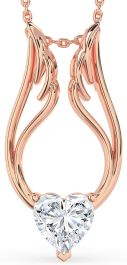 Large Diamond Rose Gold Heart Wings Necklace
