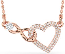 Large Diamond Rose Gold Silver Heart Infinity Interlock Necklace