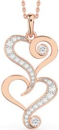 Large Diamond Rose Gold Silver Heart Necklace