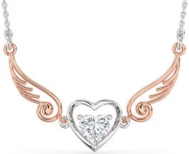 Large Diamond Silver & 10K Rose Gold Heart Wings Necklace