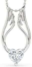 Large Diamond Silver Heart Wings Necklace