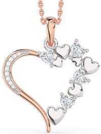 Designed with whimsy and warmth, this Mother's necklace captures a cascading arrangement of heart-shaped gems and polished golden hearts dancing within a flowing open heart frame. Each colored gem symbolizes a child, encircled by a constellation of smooth golden hearts that echo a mother’s embrace. The brilliance of the accent stones adds a touch of timeless elegance.