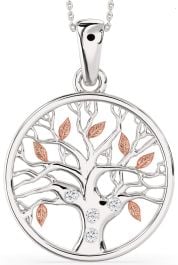 Large Diamond White Rose Gold Tree Of Life Round Necklace