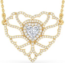 With an ornate design inspired by wings and filigree, this pendant radiates elegance and symbolism. A brilliant heart-shaped center stone anchors the piece, surrounded by delicate lines that flow outward like feathers in flight. Graceful and majestic, this pendant embodies freedom, love, and transformation—a breathtaking celebration of emotion and artistry in a truly unforgettable form.