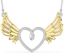 Large Diamond White Yellow Gold Heart Wings Necklace