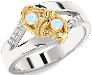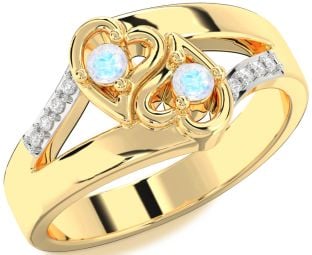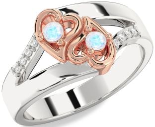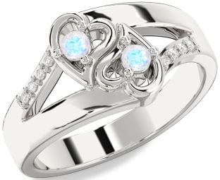 Moonstone Heart, Solitaire and Interlock Rings Jul Ruby