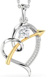 Sleek and symbolic, this pendant features a striking heart-shaped outline pierced by an arrow, capturing the thrill of love’s first spark. A brilliant accent rests where passion meets direction, while a graceful loop sweeps across the design in a dance of elegance and intention. With its clean lines and radiant flair, this piece embodies bold affection and the power of being truly struck by love.