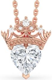 Diamond Rose Gold Heart Crown Necklace