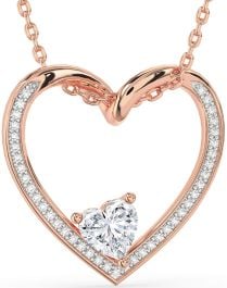 Sleek and luminous, this pendant forms a heart that gracefully frames a brilliant center accent, resting gently at the base. A fine trail of shimmering detail adds radiance along the heart's edge, enhancing its graceful curves. Symbolizing enduring love with quiet strength, this piece speaks of tenderness, trust, and the beauty of a heart that holds another close forever.