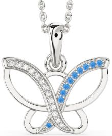 Diamond & Swiss Blue Topaz Platinum Butterfly Necklace