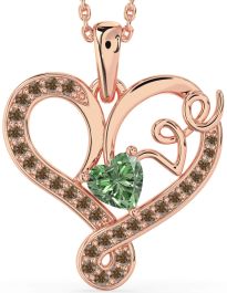 Green & Chocolate Brown Diamond Rose Gold Heart Necklace