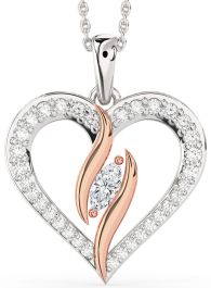 Large Diamond Platinum & Rose Gold Heart Necklace