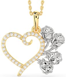 Romantic and full of charm, this pendant intertwines a delicately swirling heart with a graceful bouquet of sculpted roses. The contrast of soft sparkle and floral detail creates a design that speaks to love in full bloom. With its poetic elegance and heartfelt symbolism, this piece is a beautiful tribute to affection that blossoms and flourishes with time.
