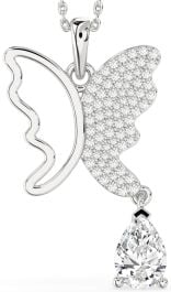 Large Diamond Silver Butterfly Necklace