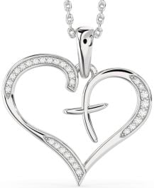 Graceful and heartfelt, this pendant blends a sweeping heart silhouette with a radiant cross, uniting love and faith in a single elegant form. Sparkling accents trace the curves with quiet brilliance, drawing the eye inward to its symbolic center. A beautiful reflection of devotion and spiritual strength, this design offers a meaningful expression that resonates with both warmth and purpose.
