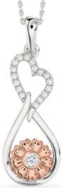 This graceful pendant combines a sparkling heart and an infinity twist that flows into a radiant floral bloom. At the center of the flower, a brilliant accent captures the eye, while the heart above shines with delicate detail. Representing endless affection and natural beauty, this piece is a tribute to love that grows and flourishes—timeless, heartfelt, and full of warmth.